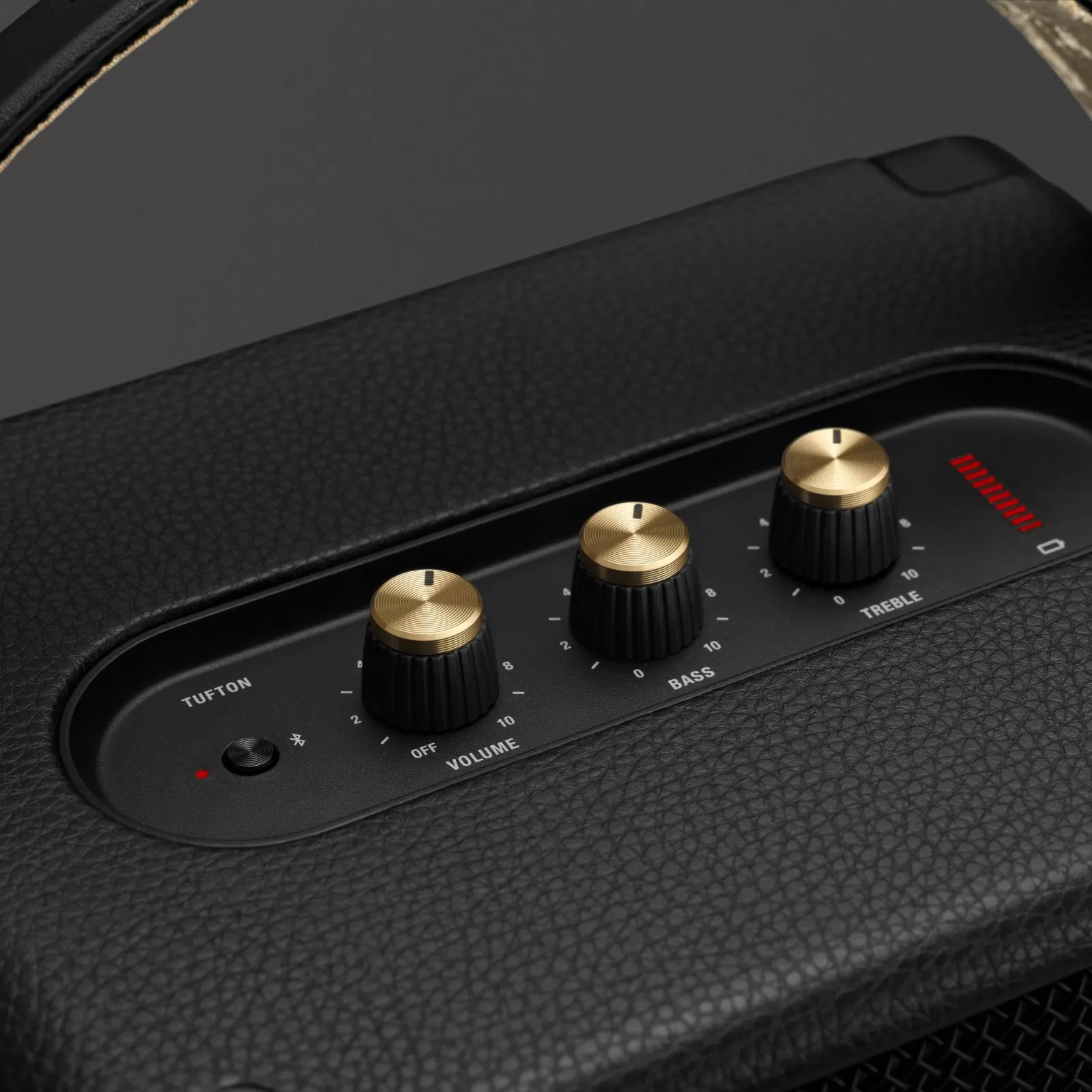 Tufton is the mightiest portable speaker from Marshall. It’s engineered as a 3-way system, producing sound from three separate drivers from the front of the speaker. An additional mid-range driver is located on the rear of the speaker, offering a clear and articulate sound across all frequencies.